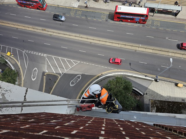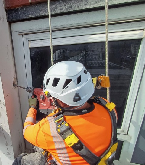Using Our Rope Access Team, we carried out the works over a 3-day period which involved using our portable anchorage systems located on the roof so our technicians could descend the building safely.